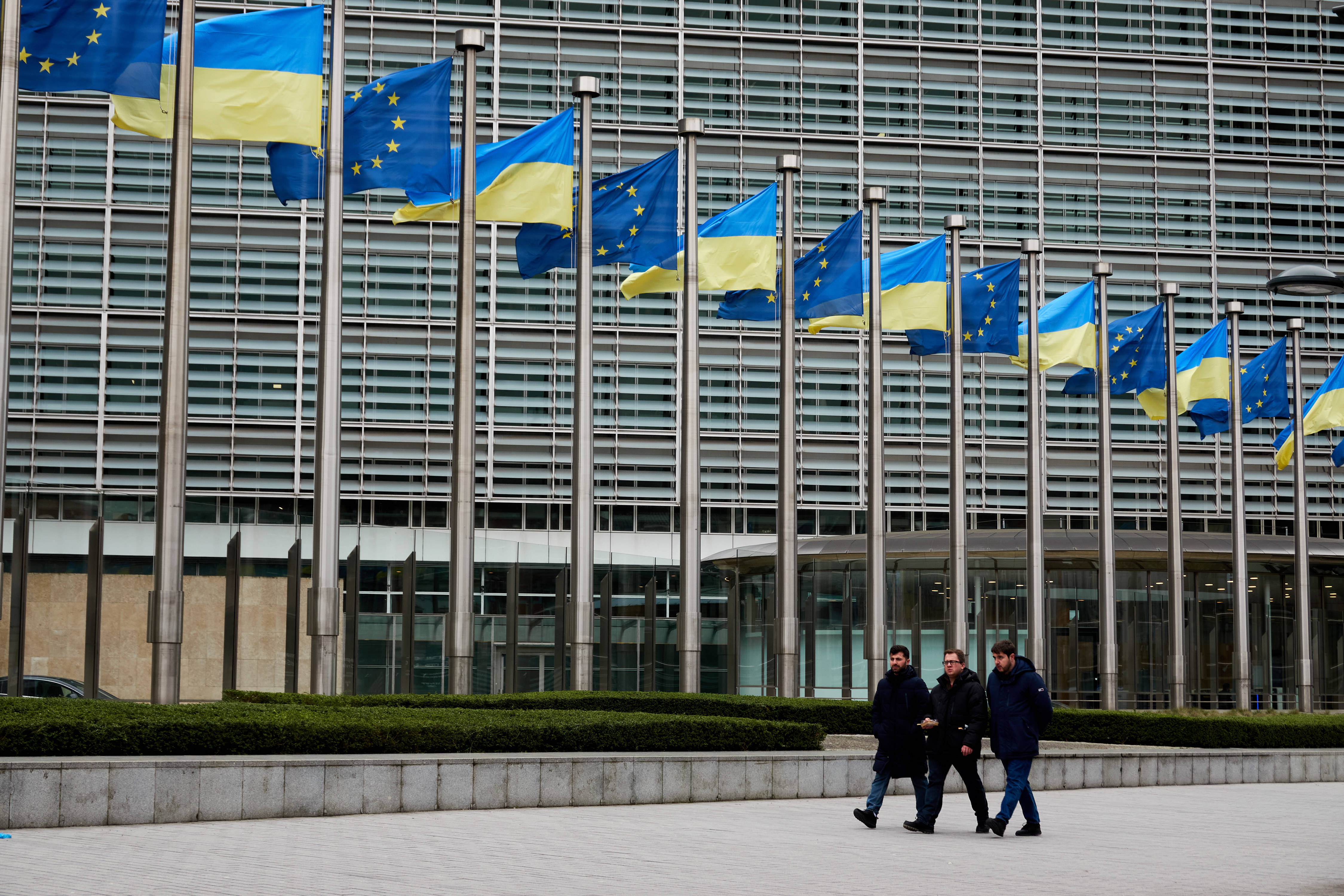 2025年2月24日,在比利时布鲁塞尔,人们走过欧盟总部。新华社记者孟鼎博摄12月31日,欧盟外交与安全政策高级代表卡娅·卡拉斯在社交媒体说,俄方说法是在“蓄意分散外界注意力”“毫无根据”。美国前驻北约代表库尔特·沃尔克也称,“没有证据”显示俄方“追求和平”。