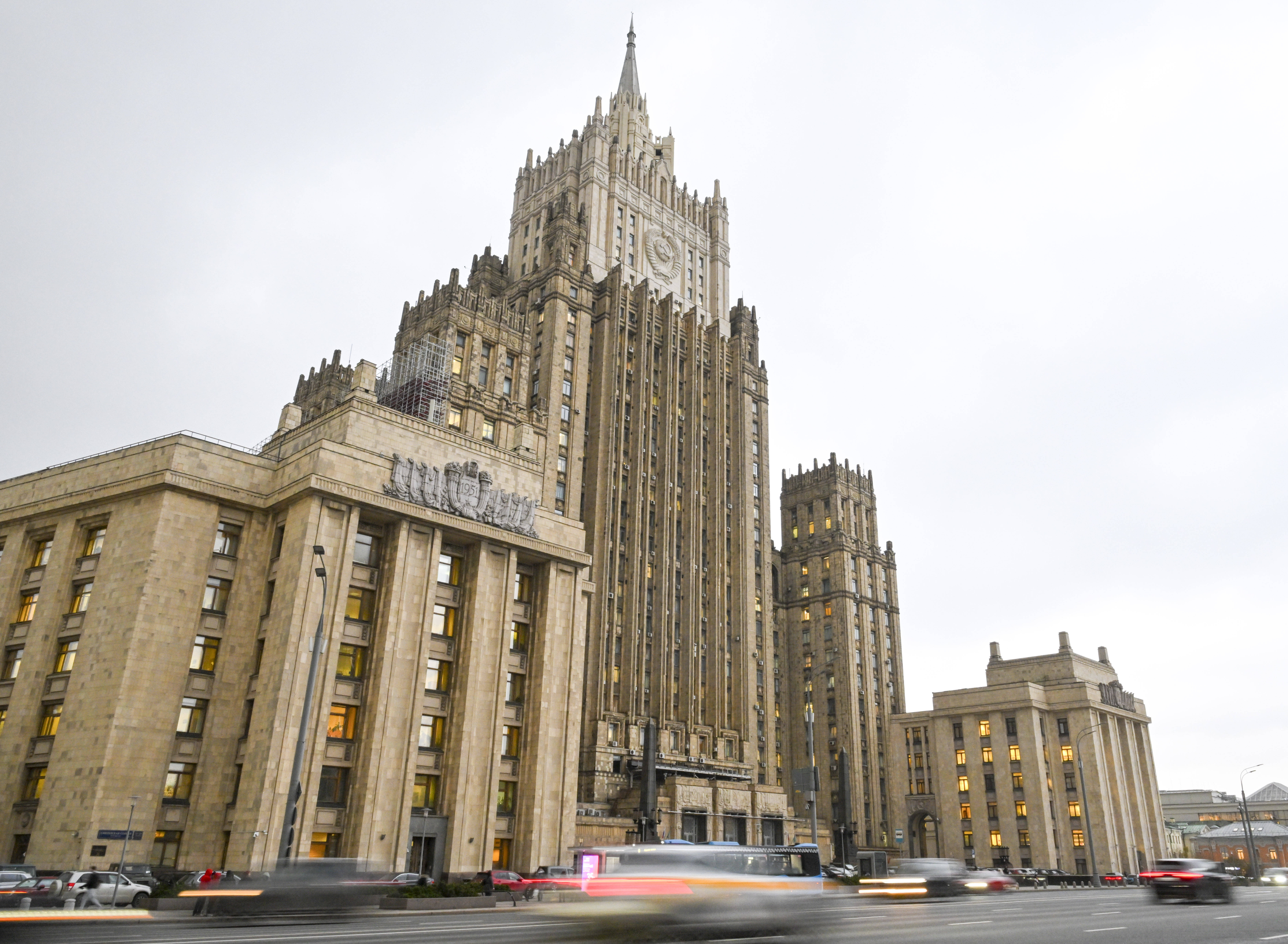 这是2025年11月11日在俄罗斯首都莫斯科拍摄的俄外交部大楼。新华社记者郝建伟摄俄罗斯外交部长拉夫罗夫12月29日表示,鉴于乌克兰袭击了位于诺夫哥罗德州的俄总统官邸,俄方有关俄乌冲突谈判的立场将有所调整。